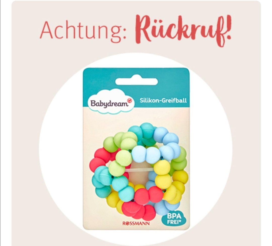 Betroffen ist der bpa freie babydream silikon greifball den rossmann in seinen filialen verkauft hat.