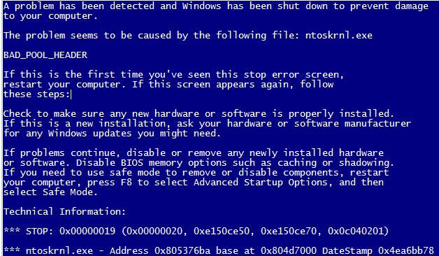 Ntoskrnl exe bad pool header if this is the first time you ve seen this stop error screen restart your computer.