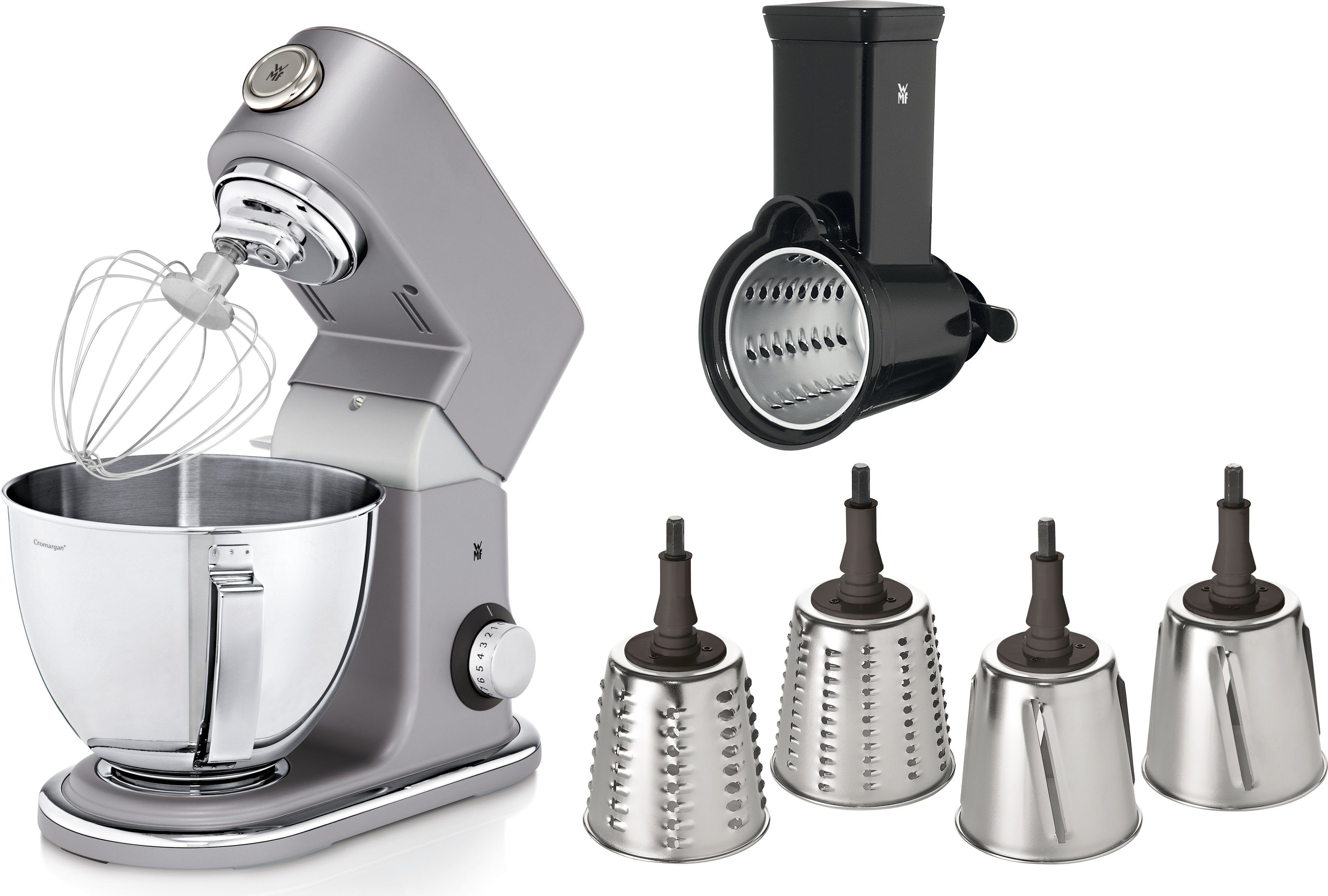 Wmf profi plus küchenmaschinen set in grau.