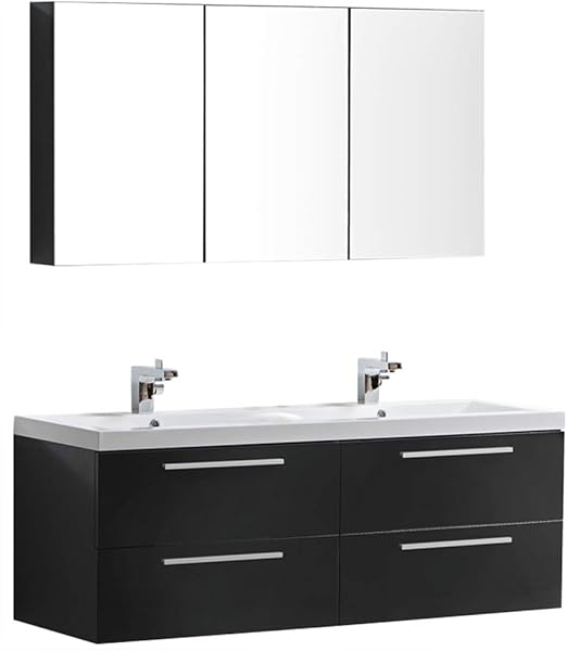Homeline badmöbel set doppelwaschbecken waschbecken spiegel und ablage vormontiert badezimmermöbel led hochglanz lackiert homeline1 schwarz 120 cm 2 hängeschränke.